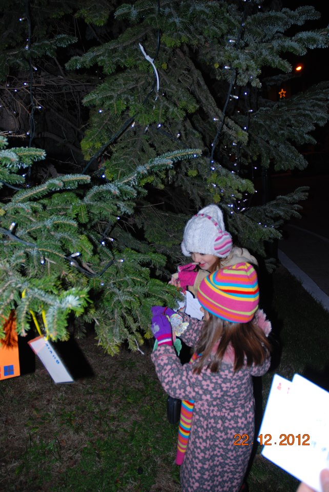 Κοριτσάκια του Κολινδρού κρεμάνε τις κάρτες τους στο Χριστουγεννιάτικο δέντρο της πλατείας(FOTO)