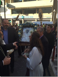 Πριν την ακολουθία, έγινε η υποδοχή της Ιεράς και Θαυματουργού Εικόνος της Παναγίας από την