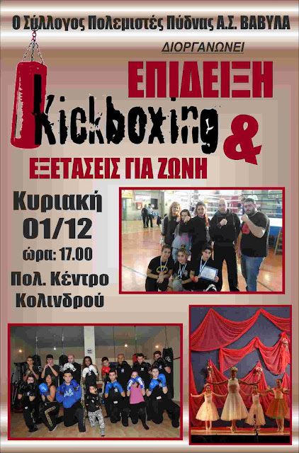 Επίδειξη KICK BOXING, εξετάσεις για ζώνη, κλήρωση δώρων στο πολιτιστικό κέντρο Κολινδρού από τους "Πολεμιστές Πύδνας Α.Σ. Βαβύλα"